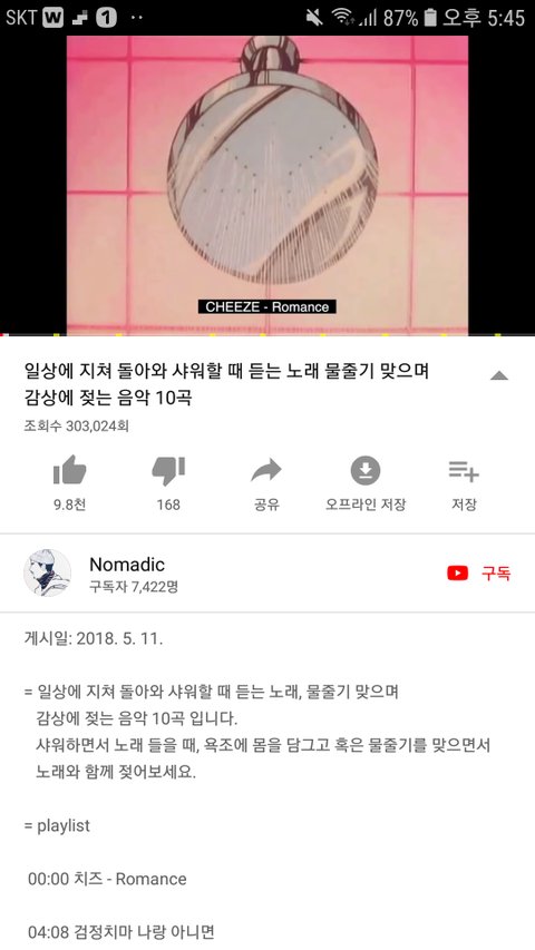 노래 : 유튜브에 샤워하기 좋은 노래 검색하면