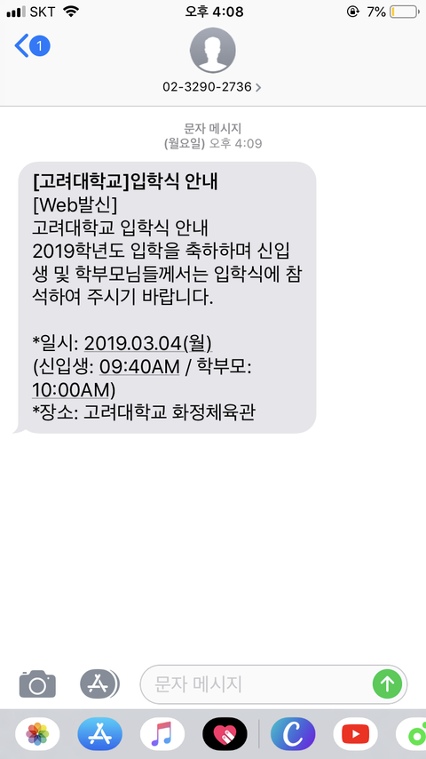 과 물어보는 댓들도 있던데 우리 과가 소수과라 과는 못 밝히겠고ㅜㅜ 대학교 인증은 뭘로 해야할지 몰라서 일단 입학식 문자 온 사진으로..!