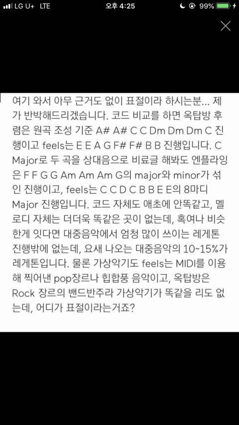 어쩌다 옥탑방이라는 신곡을 듣게 됐는데 팝송중에 counting stars 표절이라는 얘기가 있더라? 딱히 그건 아닌거 같더라고. 팝송만 듣고 지내느라 원래 알고 있던노래였는데도 비슷하다고도 안느껴질만큼 아니었거든.