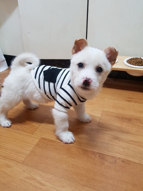 두달넘게 엄마젖을 먹고 씩씩하게 자라 보호소를 나와 검진과 접종을 하고 평생가족을 기다리고 있는 똥꼬발랄 꼬맹이 입니다