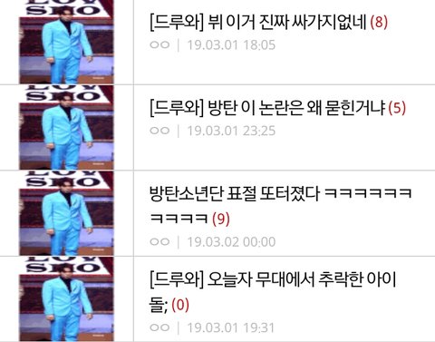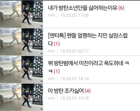 제목 엑소까는걸로 낚시하고 내용은 방탄까고 방탄까는걸로 낚시해서 엑소까고 매일 말투 이상한애가 똑같은글 도배하고 비리터진 약국소속 아이돌 블랙핑크 영업글은 유유자적 올라오고있는거보고있으니 ㅈㄴ 웃긴다니까