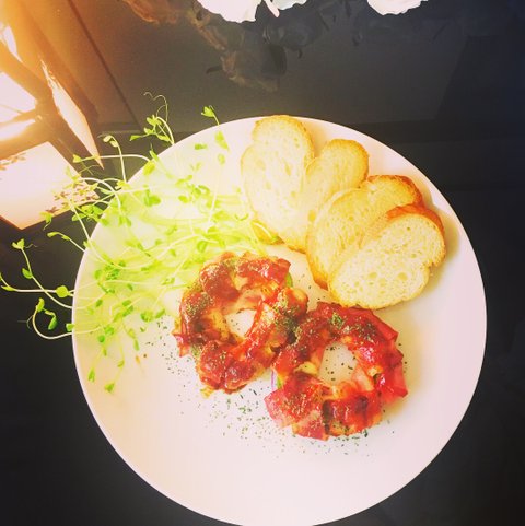 양파 베이컨 튀김 고추장 소스.