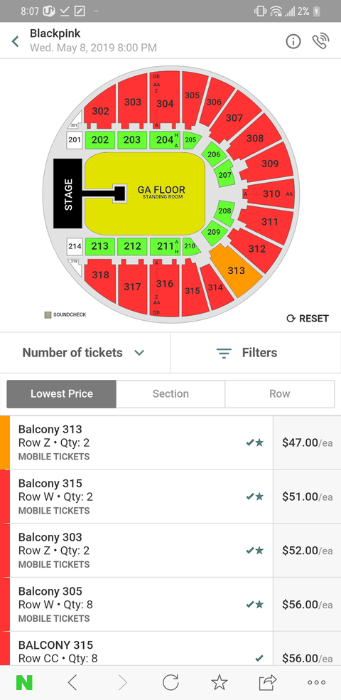 미국에서 콘서트 두달이나 남은 시점에서 낮은가격표 돌기시작하는건 아주 레어함.