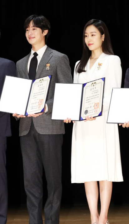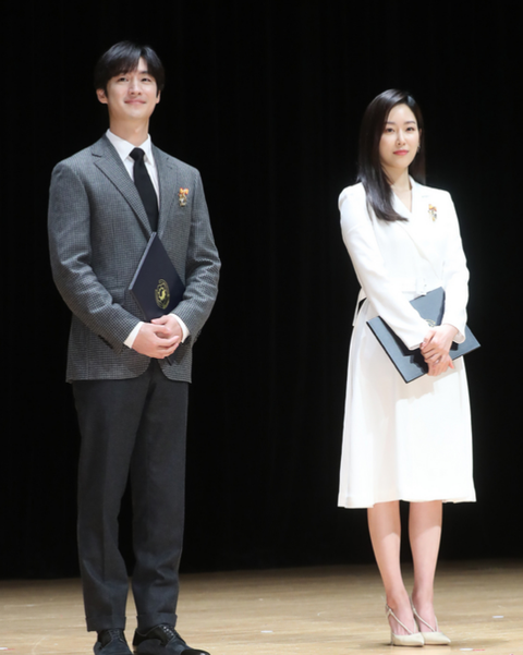 상 받고 둘이 기념 사진 찍는데...