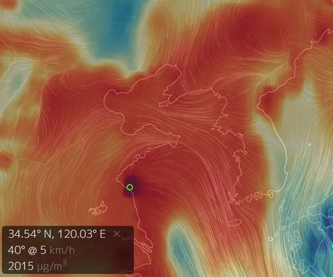 https://earth.nullschool.net/#current/particulates/surface/level/overlay=pm10/equirectangular=121.75,31.79,3000/loc=120.009,34.729