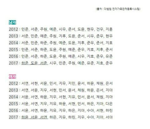 신생아 이름 인기 순위 ㄷㄷㄷ