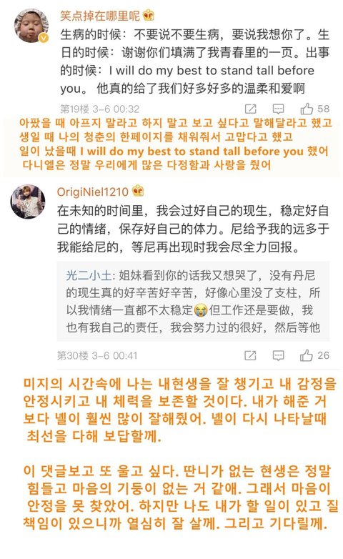 웨이보에 올라온 강다니엘 중국팬들 글이라는데