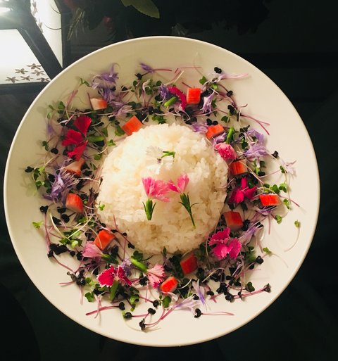 가끔 생각나면 먹는 꽃새싹 비빔밥을 모처럼 지인과 함께했다.