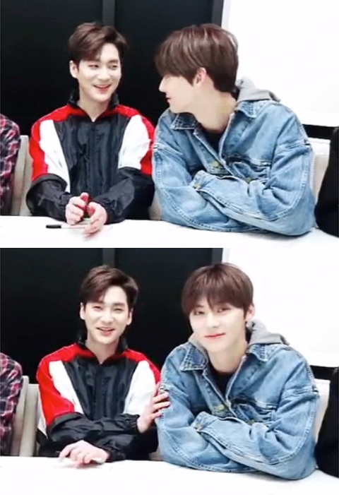 황민현은 팬싸에서도 팬들 볼 때마다 눈빛으로 사람 미치게하더니 멤버들한테도 마찬가지인듯
