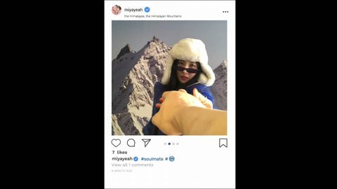 SNS에서는 산에 올라 누군가의 손을 잡은 듯한데