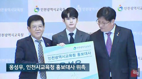 옹성우 오늘부터 고향인 인천에서 교육청 홍보대사로 활동함 그래서 인천광역시교육청에서 위촉식 있었는데