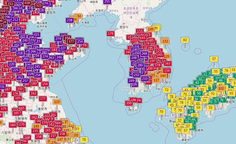 뇌피셜이긴 한데 이제 우리나라에서는 빨간색이 아닌 보라색일때 미세먼지가 위험하다고 보도할 것 같아