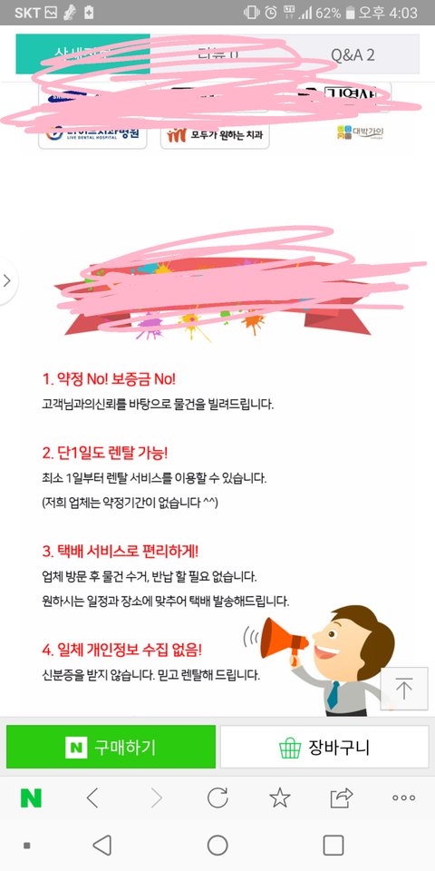 계약서나 이런건 없습니다 자기네들도 소비자믿고 렌탈해주는거라 신분증도 받지않고 렌탈해주는 업체라고 큰소리치더라구요. 판매페이지에는 위약금no 보증금no 라고 자신있게 걸어놨더라구요. 결제는 네이버 스토팜에 등록된 렌탈업체에서 구입하였습니다.