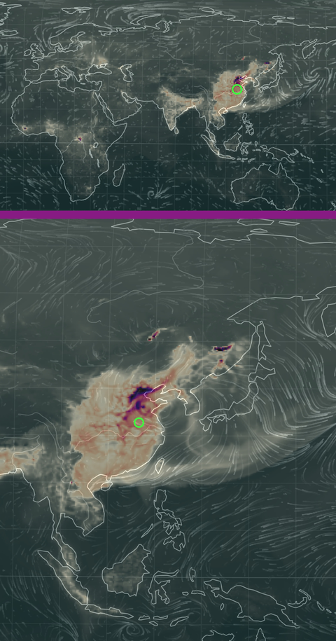 현 시각) 세계 미세먼지 지도 & 한국 미세먼지 지도