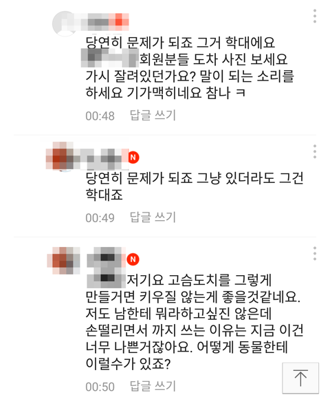 작성자가 뻔뻔하게 댓글을 달자 카페 회원들이 길게 댓글을 남김.