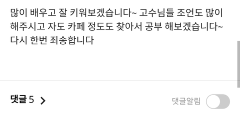 사람들이 닉네임 바꿔도 모를 것 같냐는 등 댓을 남기자 '반성하고 있어요~' 라며 기만하는 댓글을 남기다가 결국 (공개사과)라는 제목으로 글을 올림.