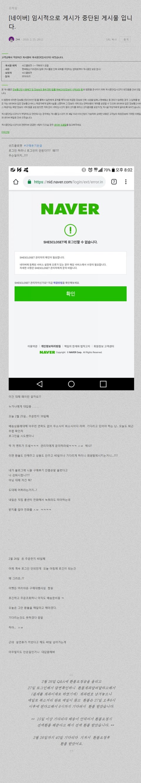 그리고 저녁에 블로그 접속하니 네이버에서 저한테 명예훼손이라고 글을 임시로 게시중단 했다는 글을 보고 어이가 없어 웃음밖에 안나오더군요.