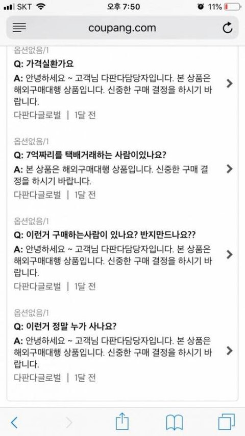 이건 뭔가 냄새가 나는데. 탈세 or 돈세탁 내지는.. 뭔가 깊숙히 범죄랑 연결되어 있을듯. 저가격에 저런 보석을 '쿠팡'에서 살리가 없다는 건 상식.