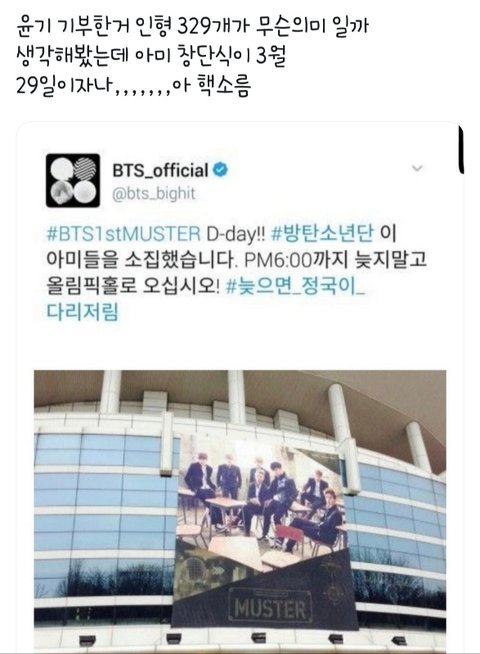 윤기가 인형을 329개 기부한 이유ㅜㅜ