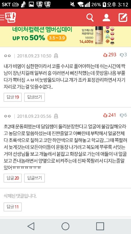 학교가면 수업중에 쌤이 농담날리면 애들이 다재밌다고웃는데 나는 하나도안웃김 ..억지로 웃고그러는데 판에서 글보면 그게 더웃김ㅋㅋㅋㅋㅠㅠㅠㅠㅠ오랜만에 쪽팔린썰 보는데 너무웃겨ㅋㅋ