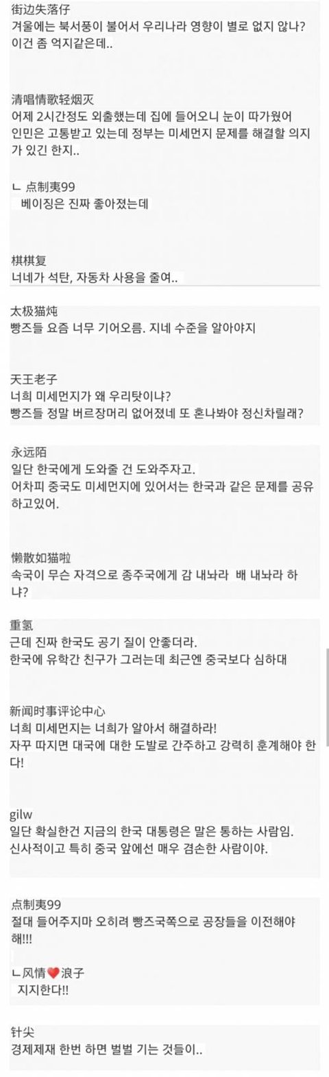 한국 미세먼지 반응을 본 중국 커뮤 반응