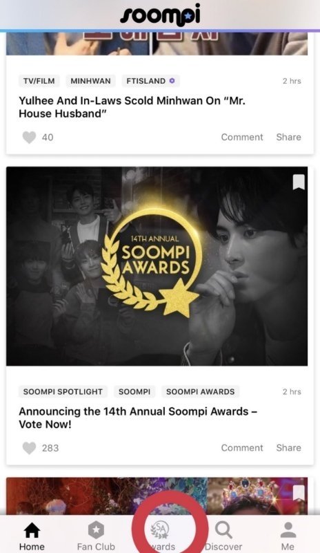 2.앱 실행 후 하단 "Awards"클릭