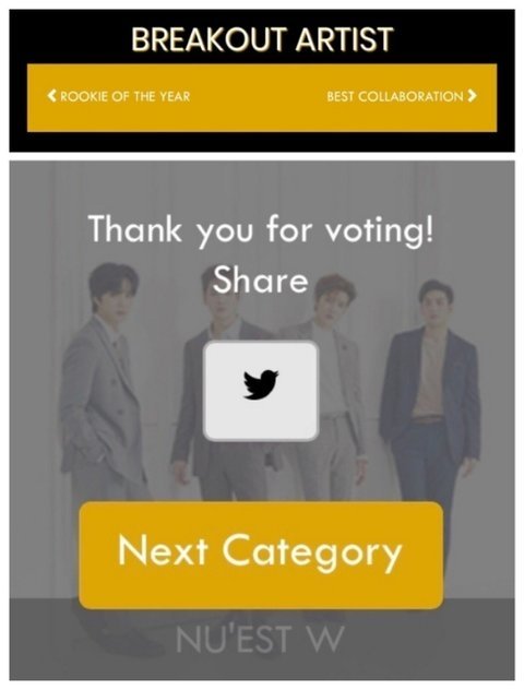 4."BREAKOUT ARTIST"부문 NU'EST W 투표(타 부문 하지 않아도 됨)