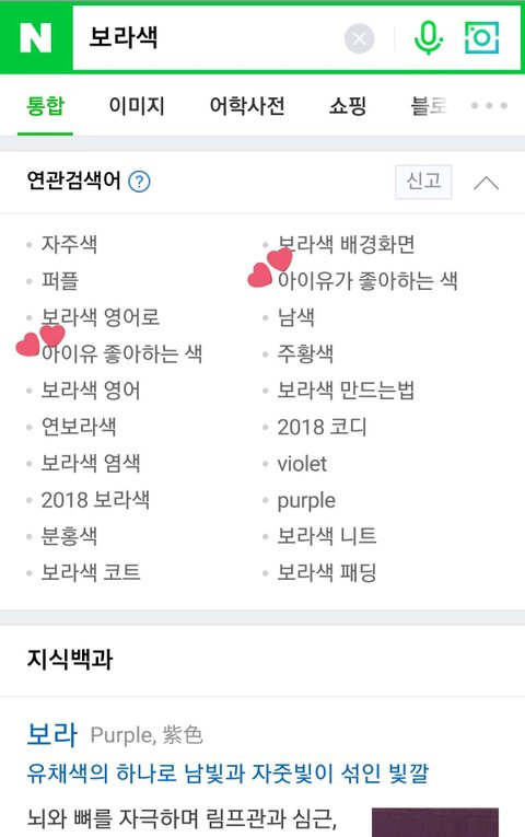 보라색 연관검색어에 있는 연예인