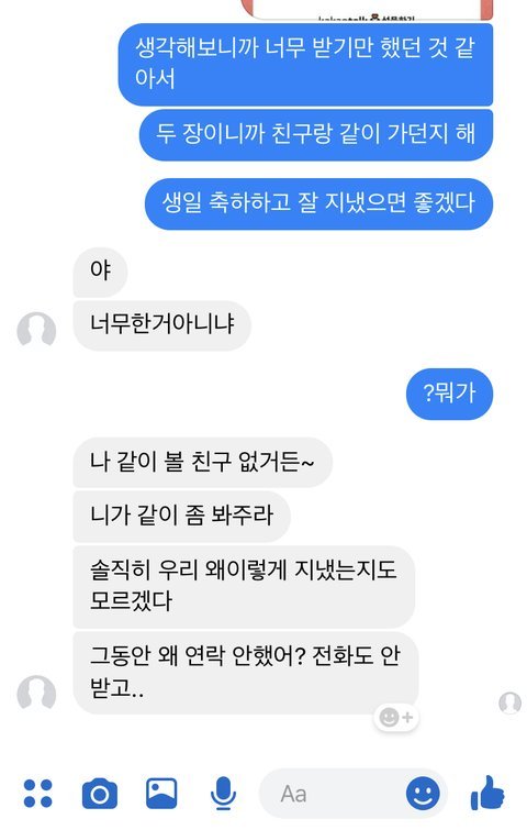 뭐라해야하냐 ㅠㅠ 나도 같이 영화보고싶고 그래서 혹시나하는마음에 말로는 못하고 표 두 장 줬는데 3년 헛으로 만난거 아니더라 어떻게 저렇게 딱 아냐 ㅜ
