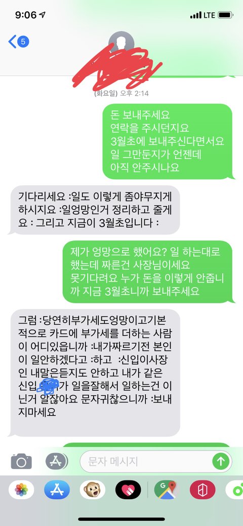 5. 돈 달라니까 일이나 이렇게 하지라는둥 개솔,,신고한다고함 그럼 돈 더 늦게 준다고함