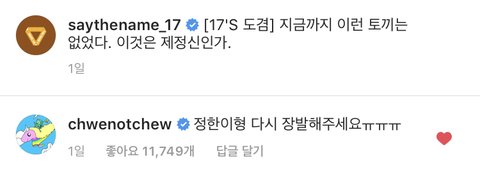 개인취향인거지 왜저러냐고 그것도 멤버 직접 언급하면서ㅋㅋㅋ 멤버가 자기 친구도 아니고 막말 쩔지요ㅋㅋㅋ 안그래도 승관이가 이거 봤는지 오늘 캐럿이라는 이름 달고 안 좋은 말하는 사람들 무시하랬음ㅇㅇ