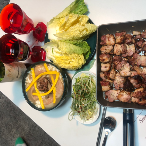 물론 아보카도는 식사 대용이 못되니깐 고추장 삼겹살 재다가 둘이서 일키로를 구워먹었어요. 대식가 부부는 식비가 모든 소비의 오십프로예요 ㅠㅠ 로즈마리로 잡내 제거하니까 고기 냄새 없이 아주 맛있는 양념고기가 되었습니다.