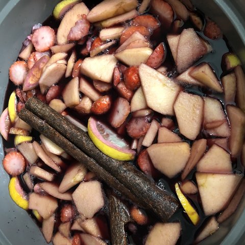 쌀쌀해지면 냉장고에 남아있는 과일이랑 계피 넣고 뱅쇼를 만들어요. 만들어서 친한 사람들 선물도 하고, 감기 걸리기 전에 약처럼 마시고 합니다. 따듯하고 건강해지는 느낌적인 느낌이예요. 밤에 차처럼 마시면 분위기도 살고요.