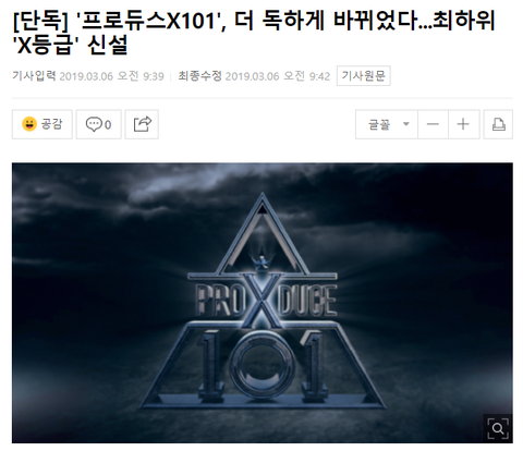 최하위 X등급을 신설했다는 프로듀스X101