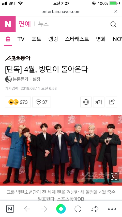 방탄 노래는 믿듣, 무대보는 맛 있어서 기달리게 되더라 이번에는 앨범도 예판으로 살려고.. 매번 노래 듣고 나서 전곡 좋으면 사는데 그게 대부분 방탄였어