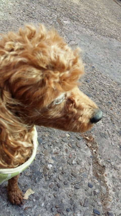 특징: 미용한 지 1달 정도 되었음, 사람을 잘 따름, 혀에 검은 점 2개가 있음, 짖을 때 높은 톤으로 짖음, 중성화X, 다른 강아지가 자기 냄새 절대 못 맡게 함, 검은색 강아지 무서워 함,