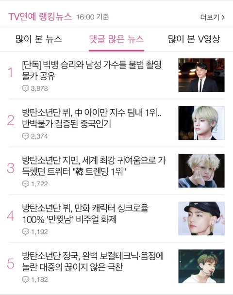 이건 방탄을 까는게 절대 아님 나는 팬은 아니지만 노래도 많이 듣고 보면 멜론 친밀도 93프로 까지 많이 들은적도 있음 방탄뿐만아니라 댓관하는 그룹들 꽤 있던데 중요한 이슈도 아니고 걍 앓는성의 기사들은 다른 연예계 이슈들 뜰 수 있게 굳이 작위적으로 댓관할 필요는 없지 않나 싶음