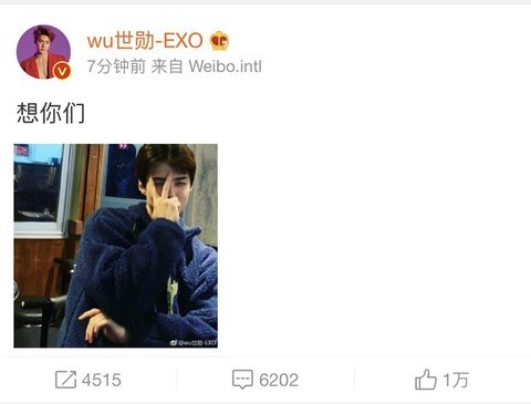 +)추가한당 원래 가끔씩 의미심장한 말 자주 올리긴 하는데 만약에 의도가 있었으면 웨이보때문일꺼야 세훈이 저거 올리기 전까지 중국아이돌팬덤에서 세훈이 외모조롱부터 시작해서 엄청까이고 끝에가서는 중국아이돌팬하고 한국아이돌팬들 대립까지 가서 매국노다 이런 소리까지 나오면서 점점 커지고 웨이보 핫검색어 순위권에 올라가게 되서 세훈이가 그거 보고 올렸을 가능성이 커 전에도 몇번 그랬었엉!