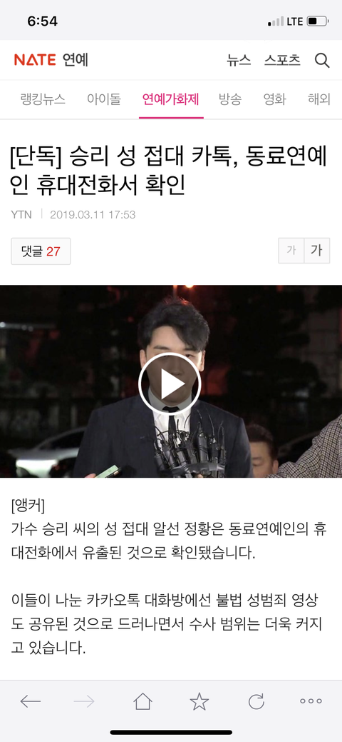 YTN 취재결과, 카카오톡 대화의 출처는 승리 씨와 같은 채팅방에 있던 동료 연예인의 휴대전화인 것으로 확인됐습니다.