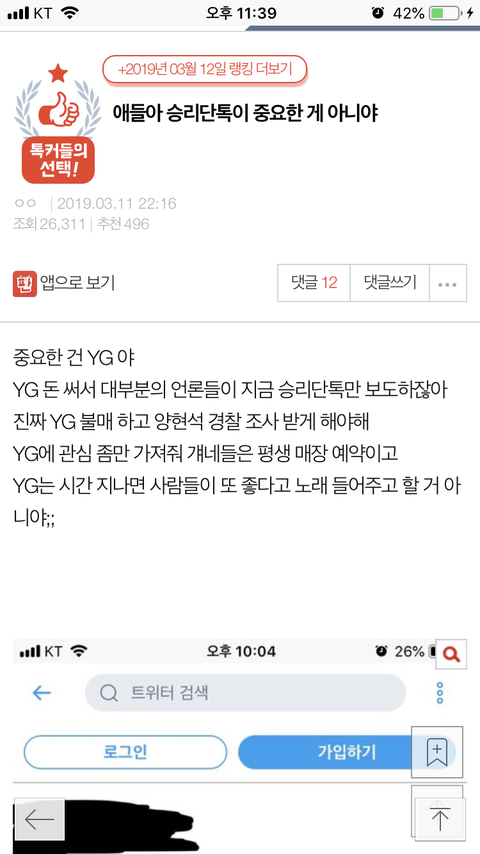 1)블루썬인지 뭐시긴지에서 있었던 물뽕, 강간, 성매매 모두 사라지고 정준영과 승리의 몰카만 남음. 2)블루썬의 경찰과의 커넥션, 세금 탈루 사라짐 3)이명박 10억 중 1000만원만 내고 나와서 엄격한 통제한다더니 드나드는 사람 아무도 확인 안 함. 경찰이 하기로 한 일. 4)전두환 사건 묻힘. 5)곽성동 의원 강원랜드 청탁비리한 것 맞다는 당사자들 증언 모두 묻힘. 6)클럽들 조세포탈 모두 사라짐. 아레나 600억 건도 사라짐. 7)블루썬인지에서 어울렸던 vip 중 마약하던 인간들 중 하나가 자한당 중진의원 사위와 관련 있다는 사실도 사라짐. 그리고 이걸 주동하고 있는 것이 스브스. 한편으론 대단하지만 정작 중요한 사항들 모두 사라지는 마법을 여러분은 경험하고 있습니다. 몰카도 뿌리 뽑아야 하지만 물뽕 먹이고 강간하는 것도 그못지 않은 중요한 거 아닌가? 지금 대통령만 바뀌었지 온갖 협잡하던 비리 경찰과 공무원들이 바뀌었나? 만약 그들을 바꾼다면 난리치겠지. 블랙리스트라고 하면서 내쫓았다고 자한당 특검가자고 할 걸? 그런데 왜 권성동 의원의 저 명확한 비리는 묻히는데? 우리 정신 안 차리면 여전히 저 쓰레기들 봐준 경찰들은 다음에도 이런 물타기로 넘어가겠지. 웃기는 것은 정준영 저 카톡이 2015년 2016년 거라는 거. 왜 2018년은 없는 건데? 지금 시기에 왜 정준영 몰카를 들고 나오는 건데? 저거 승리 뒤의 검은 세력 덮는 거 아냐?