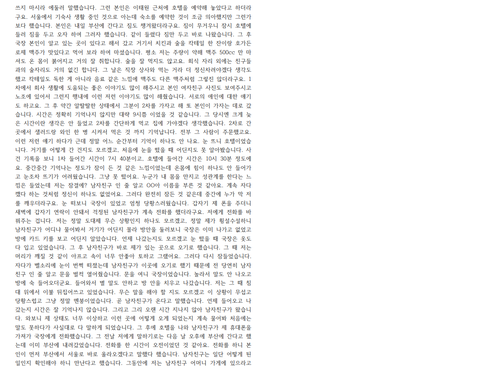 언제 나갔는지도 모르겠고 눈 떴을 때 국장은 옷도 다 입고 있었습니다. 그 후 남자친구가 바로 제가 있는 곳으로 오기로 했습니다. 그 때 저는 머리가 깨질 것 같이 아프고 속이 너무 안좋아 토하고 그랬어요. 그러다 다시 잠들었습니다. 자다가 벨소리에 눈이 번쩍 떠졌는데 남자친구가 이곳에 오기로 했기 때문에 전 당연히 남자친구 인 줄 알고 문을 벌컥 열어줬습니다. 문을 여니 국장이었습니다. 놀라서 말도 안 나오고 방에 숙 들어오더군요. 들어와서 별 말도 안하고 방 안을 치우고 나갔습니다. 저는 그 때 침대 위에서 이불 뒤집어쓰고 있었습니다. 무슨 말을 해야 할 지도 모르겠고 이 상황이 무섭고 당황스럽고 그냥 정말 멘붕이었습니다. 곧 남자친구가 온다고 말했습니다. 언제 들어오고 나갔는지 시간은 잘 기억나지 않습니다. 그리고 그리 오랜 시간 지나지 않아 남자친구가 왔습니다. 와보니 제 상태도 너무 이상하고 이런 곳에 어떻게 오게 되었는지 계속 물어봐 처음에는 말도 못하다가 사실대로 다 말하게 되었습니다. 그 후에 호텔을 나와 남자친구가 제 휴대폰을 가져가 국장에게 전화했습니다. 그 전날 저에게 말하기로는 다음 날 오후에 부산에 간다고 했는데 이미 부산에 내려갔었습니다. 전화를 한 시간이 오전이었던 것 같아요. 전화를 하니 본인이 먼저 부산에서 서울로 바로 올라오겠다고 말했다 했습니다. 남자친구는 일단 어떻게 된 일인지 확인해야 하니 만난다고 했습니다. 그동안에 저는 남자친구 어머니 가게에 있으라고 하여 거기에 있었습니다. 두 사람이 만나서 무슨 얘기를 했는지는 저에게 말해 주지 않아서 잘 모르겠습니다.