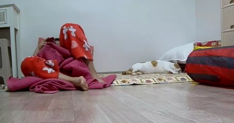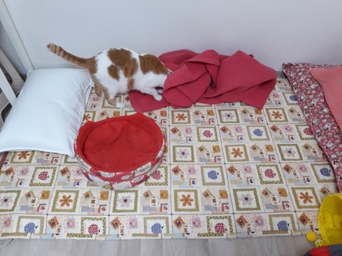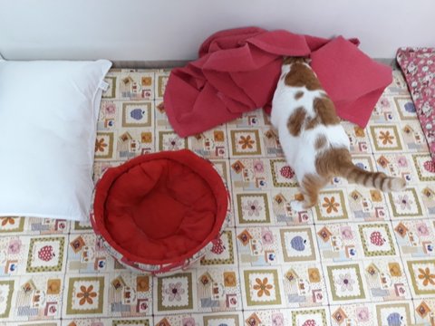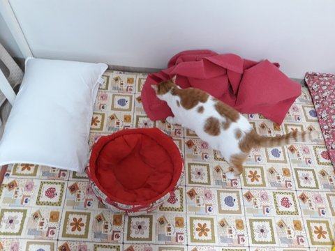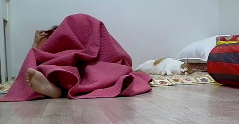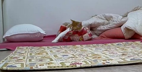 집사 외출전에 이불속으로 들어가기 위해 안간힘을 씀.