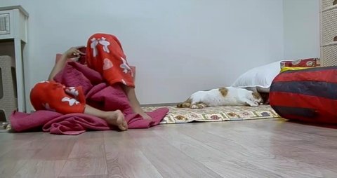 이불속으로 들어가고 싶은데 못들어가고 있는 도칠군이 안쓰러워