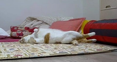 주말에 외출한 집사가 들어오는 소리가 들려서 일어났음.