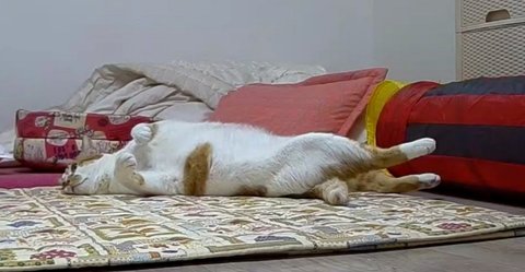 카메라를 보고 있는 집사를 위해 장기자랑 애교를 부리고 있음.
