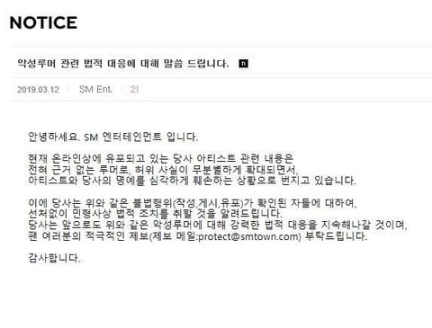 스엠응 뭐하냐 세훈 아니라면 고소공지 때려랴