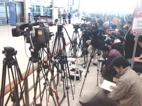 인기많네 기자들이 기다려주고 비행기에서 내릴때 얼마나 설렜을꼬