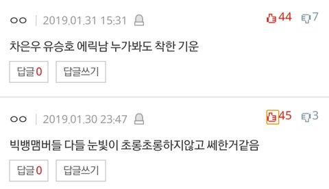 솔직히 난 차은우 좀 유정? 같음 진짜 착하고 바른 것 같이 보이는데 약간 좀 너무 만들어진 느낌 소속사에서 어떻게 어떻게 말하라고 시켜서 그런지 모르겠는데 에릭남 같이 쎄한 구석 없는 사람은 아닌 것 같음