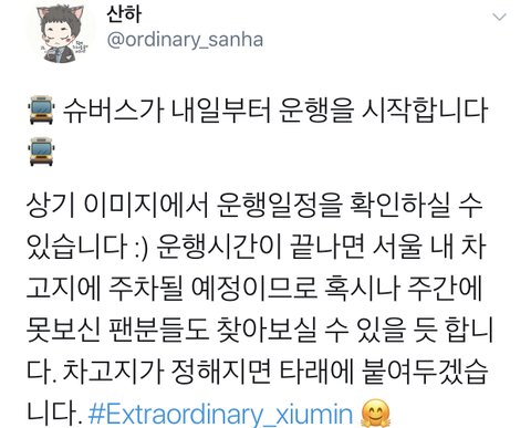 산하님 시우민 버스 실사 떴다!!!!!!!!!