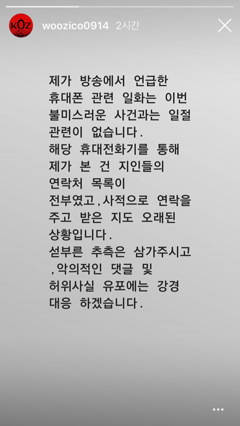 지코도 강경대응 한대 인스타 뜸